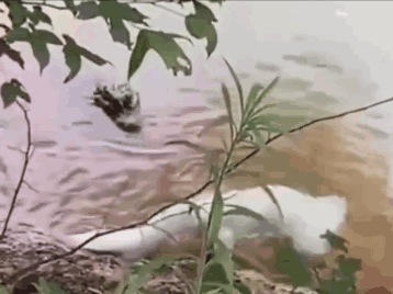 但很多时候,它们还会采用“坐等”的捕猎方式:身体浮在水面假装是枯木,待鸟类、蛙类等驻足停留时,它会缓慢下沉身体,引导目标物向其头部移动,最终一举拿下。