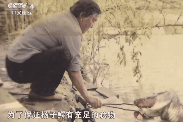 当时,保护区还未建立,扬子鳄在栖息地找食物不太容易,张金银养鱼种菜赚的钱,需要贴进去买肉喂鳄鱼。即使如此,老人也无怨无悔。