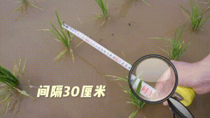插秧也是一项技术活。每列秧苗要间隔30厘米,每次插入4到5株秧苗,插进3厘米深,完成一个点位后退步17厘米再插新点位。这样的种植密度,能够让秧苗互不影响,共同享受光照和水肥的滋养。