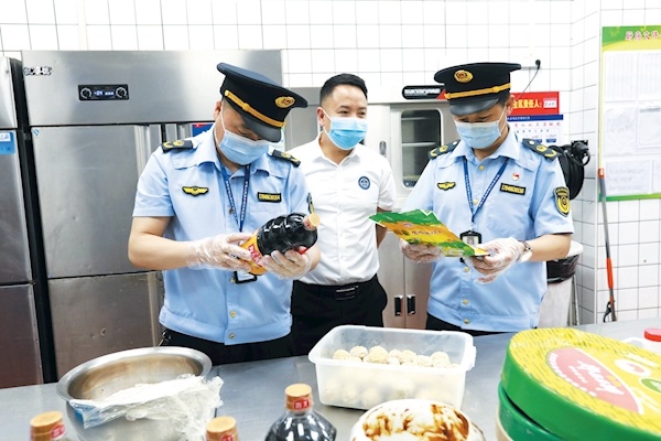 日前,竹山县市场监管局工作人员在辖区餐饮单位检查食品安全。该局实行“主动联系、提前介入、责任到人、全程监督、巡视督查”的工作模式,以考点学校食堂、考点周边餐饮单位为重点,启动中高考期间食品安全保障工作,保障食品安全,为中高考护航。特约记者 朱本双 通讯员 何耀波 柯明摄