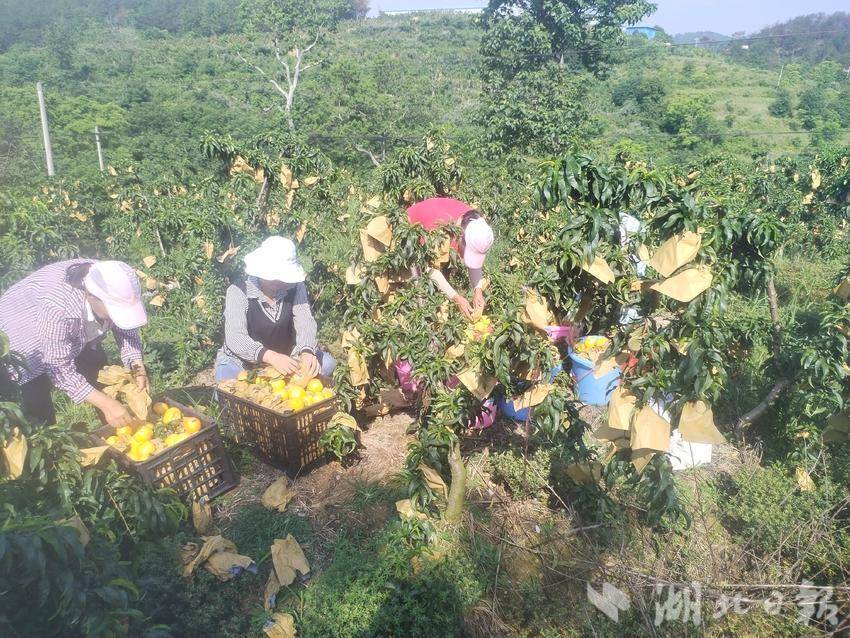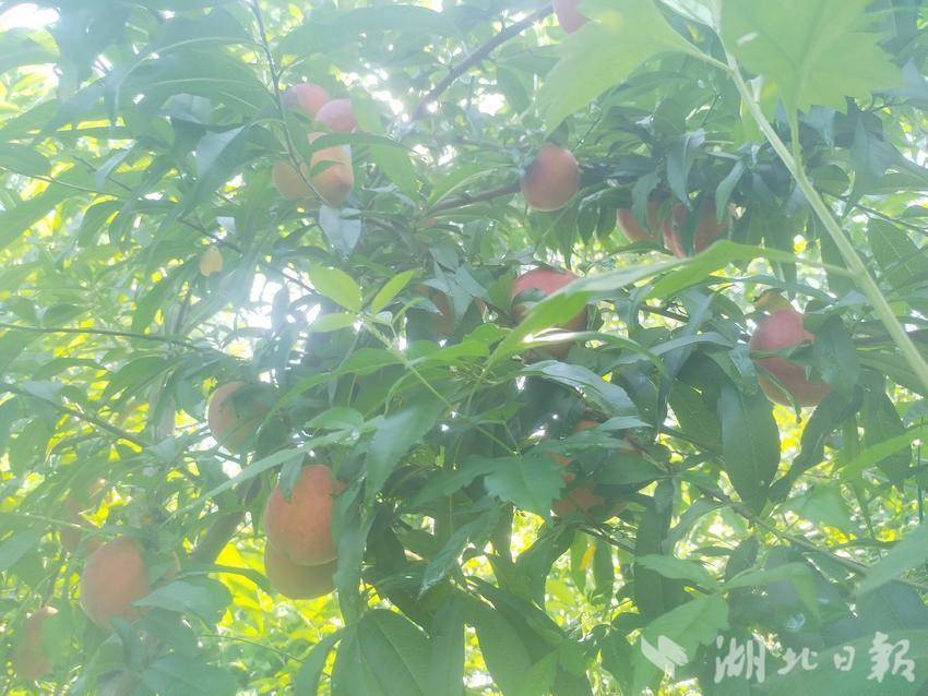 湖北日报客户端讯(通讯员 吴玉婷)走进大悟县四姑镇田河村芳科种养殖农民专业合作社生态农场,片片桃树葱郁茂盛,个个油桃鲜亮红润、缀满枝头,果农们正忙着采摘、装筐。