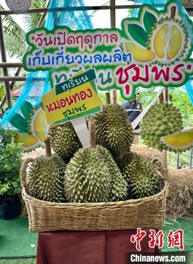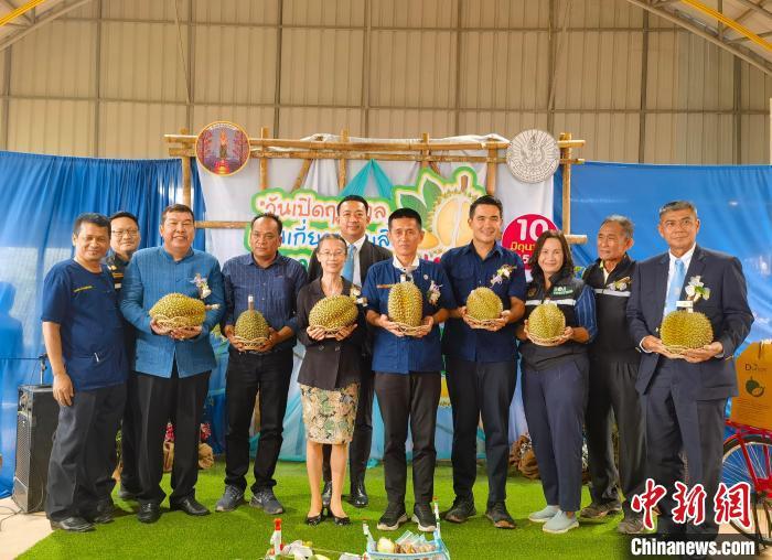 中新网曼谷6月10日电(李映民 张靖敏)当地时间6月10日,泰国春蓬府府尹Wisa砍下了榴莲第一刀,开启了2023年榴莲收获季。