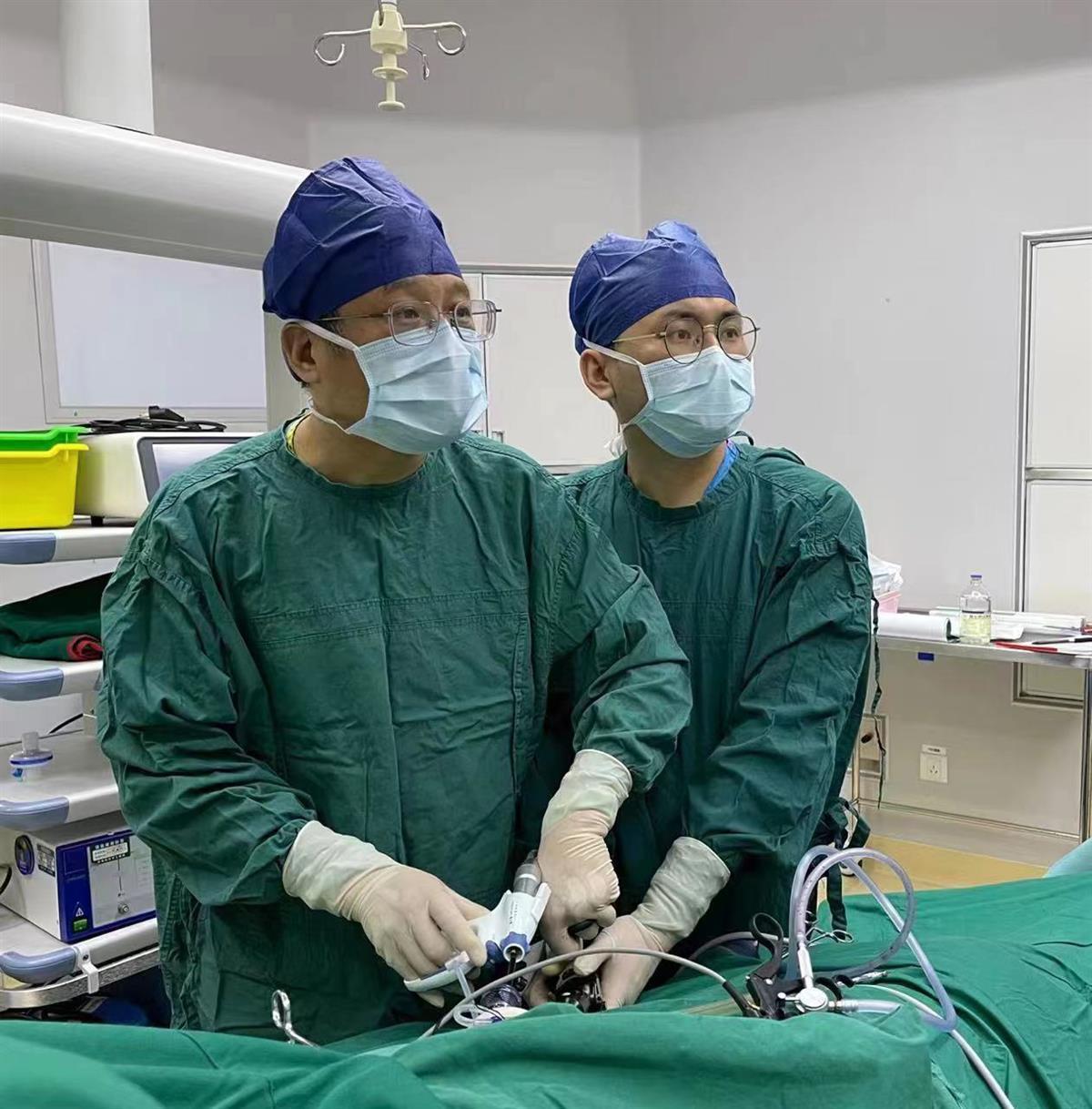 袁林(左一)单孔腹腔镜手术中(通讯员供图)