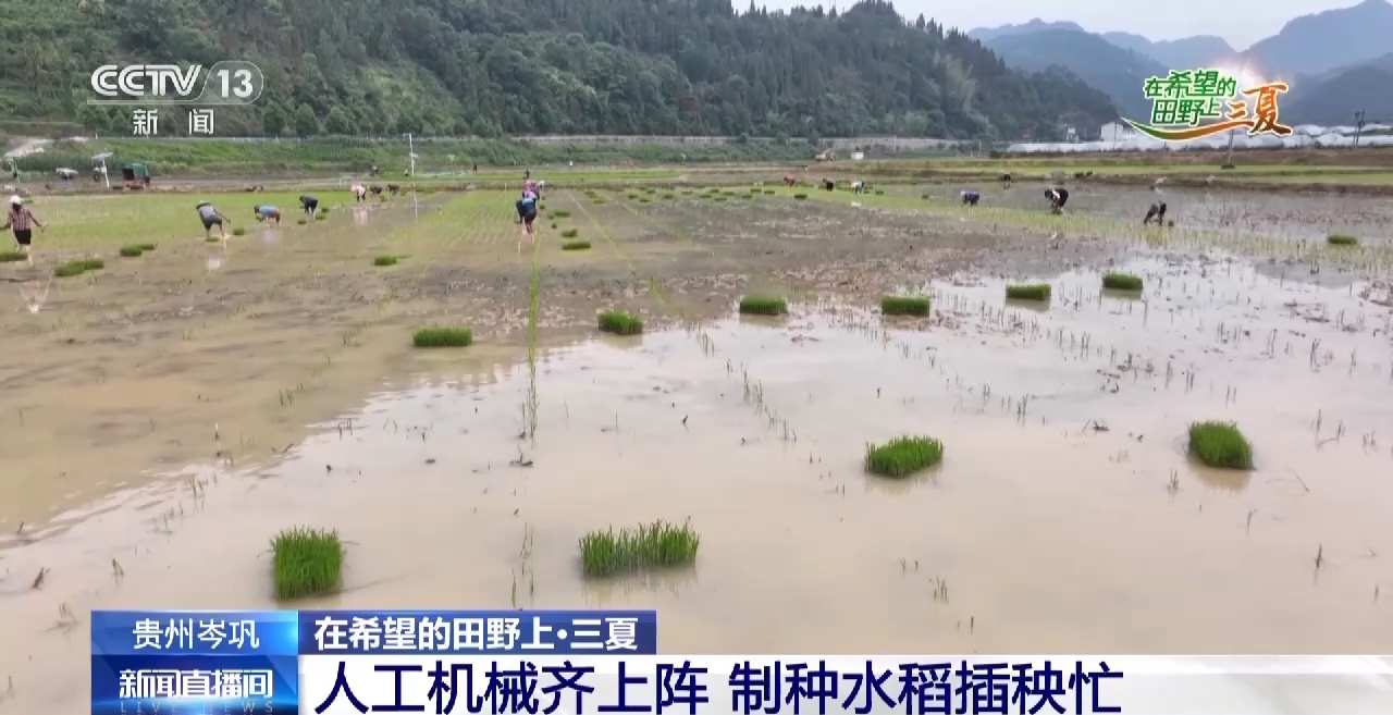 岑巩县是贵州的水稻制种大县,今年全县水稻制种面积3.82万亩。进入六月,因降雨充沛,当地各个乡镇抢抓有利时节,人工、机械齐上阵,推进制种水稻插秧。