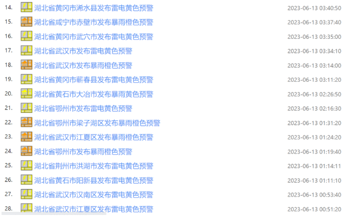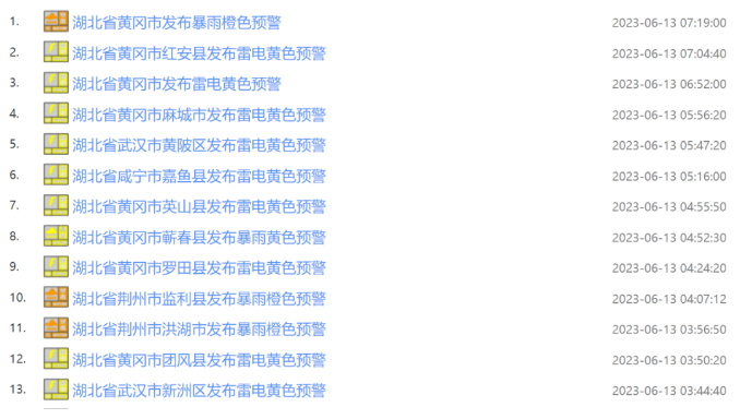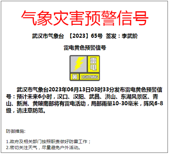 武汉市气象台3时13分发布暴雨橙色预警信号过去1小时武汉东湖高新区花山街道及周边已出现40毫米以上降水预计未来3小时上述地区仍将有10~30毫米降水