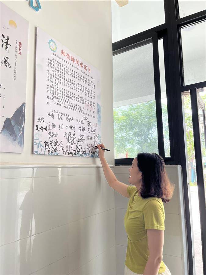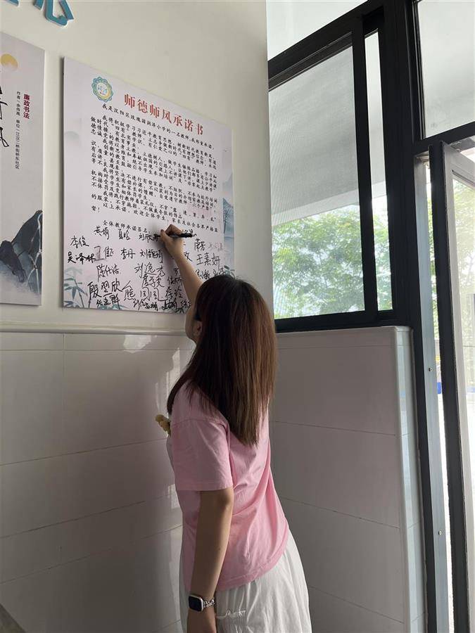 6月初,玫瑰园润泽小学召开“清廉学校”建设工作会议,该校党支部书记黄娟进行“清廉学校”宣传动员,要求师生切实落实“清廉学校”建设任务,努力营造“崇廉、奉廉、赞廉”的校园文化氛围。该校全体教师在师德师风廉洁从教承诺板上签名,承诺板被放置于老师们的必经之路上,提醒大家时刻铭记“清正廉洁”。