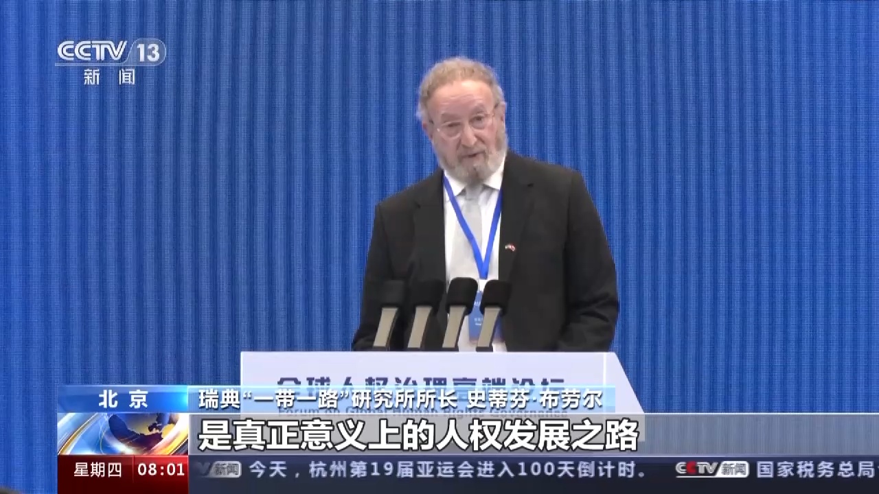 瑞典“一带一路”研究所所长 史蒂芬·布劳尔:今年是习近平主席提出“一带一路”倡议10周年。我相信,这是通往和平之路,是真正意义上的人权发展之路,同时,也是消除全球贫困之路。遗憾的是,美国、英国以及七国集团不断企图将中国妖魔化,这是由于他们对现代中国和中华五千年文明史的恐惧和无知。