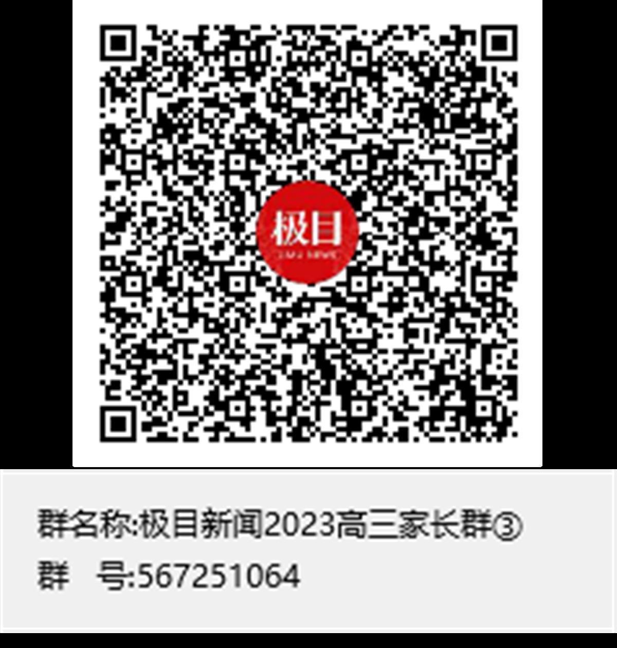 同时,2023年高招填报志愿期间,极目新闻还将开设多个新闻栏目,举行多项公益活动。家长朋友可加入“极目新闻2023高三家长群③”(QQ群号:567251064),第一时间掌握权威信息,第一时间获知活动预告,第一时间解开心中疑惑。