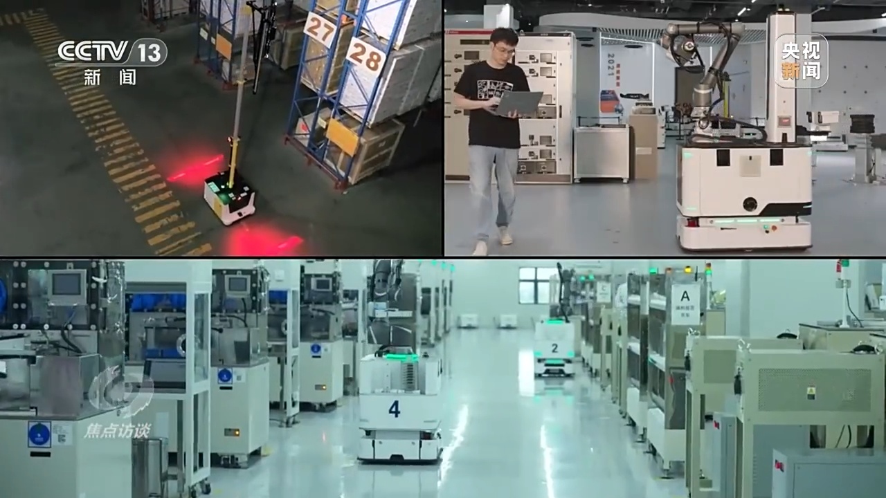 在现场记者还看到不少“脚”,也就是移动机器人。比如,可用于物流行业的移动机器人、可用于医疗机构的送药机器人,还有用于汽车制造的底盘合装移动机器人。