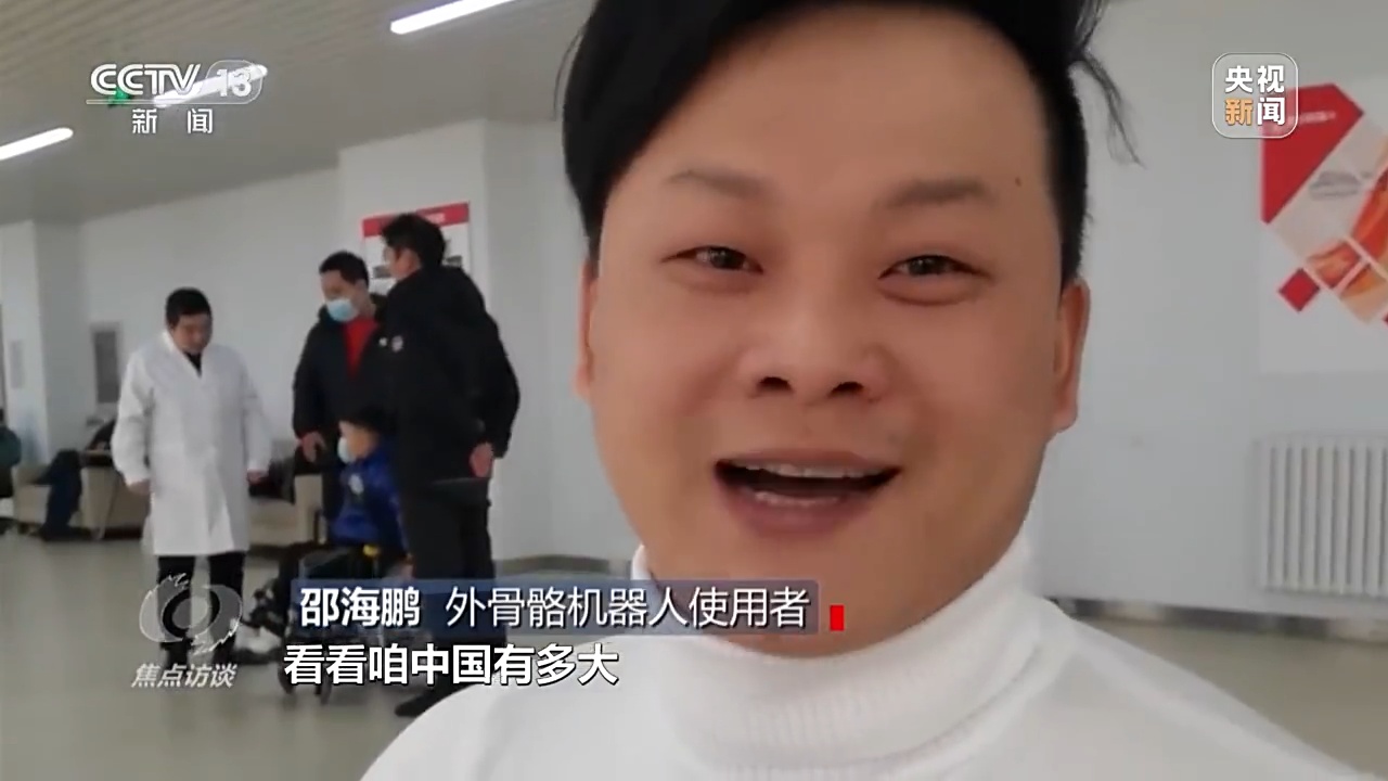 邵海鹏和胡晓雷穿戴的都是由北京大艾研发的外骨骼康复机器人。这是中国首个通过国家药品监督管理局认证的下肢外骨骼机器人。目前,外骨骼康复机器人已成为治疗脊椎损伤、下肢截瘫、偏瘫等重大恶性疾病的有效工具。