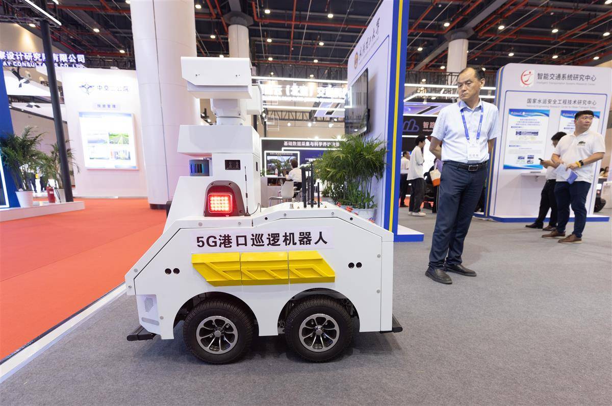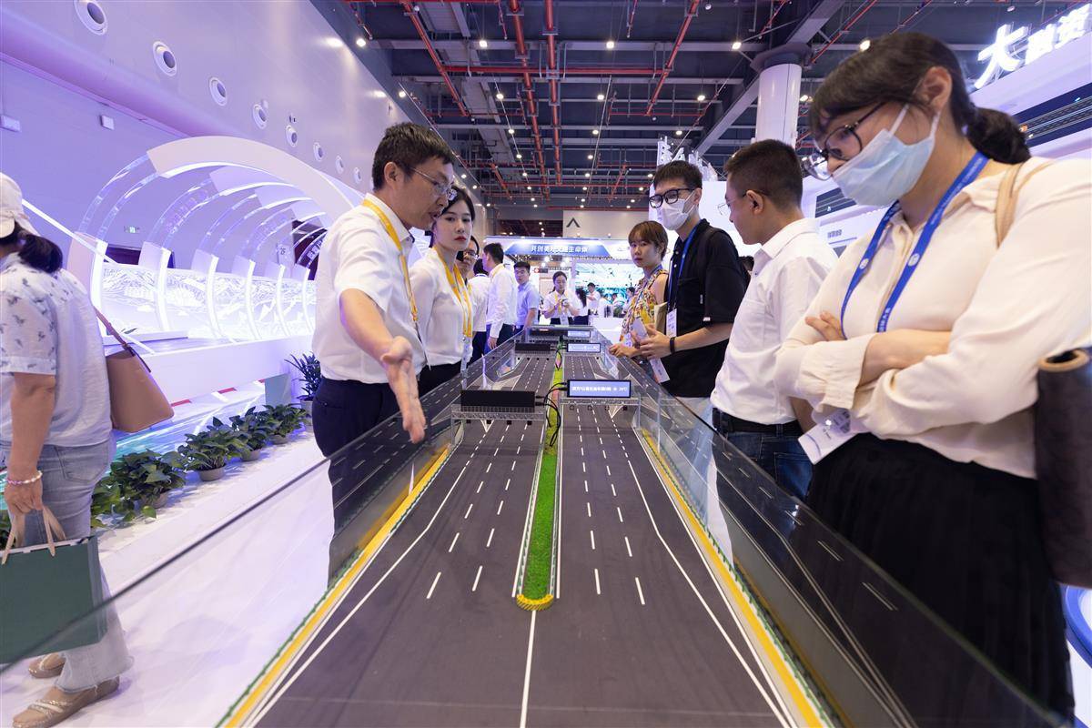 在交通博览会中交二航局展台展区,展示了其自主研发的世界首台一体化智能筑塔机。有了这个“神器”,工人在百米高空如履平地。据称施工效率提高70%,高空作业人员减少60%,在深中通道、常泰长江大桥、湖北燕矶长江大桥等项目成功应用。