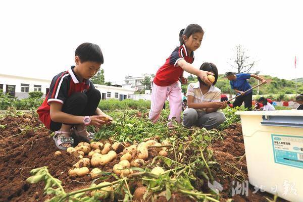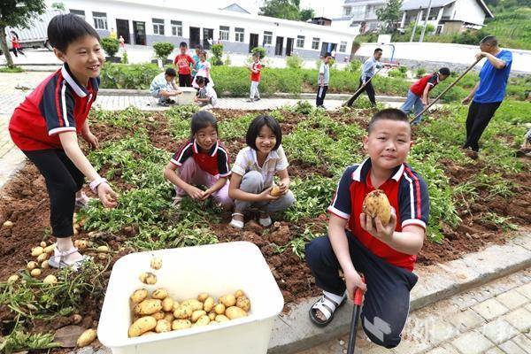 “我喜欢吃土豆,因为好吃!”“我喜欢吃土豆,因为有营养!” 6月15日,营盘河小学组织师生开展劳动教育,师生扛着锄头,拿着筐子,来到土豆种植区,喜气洋洋地挖着土豆。还有的学生在老师的指导下,学习采摘辣椒、鲜桃、李子、金银花等,大家忙得热火朝天。一个个小脸上汗水涔涔,沾满了泥土的小手,挡不住种植和丰收的快乐。