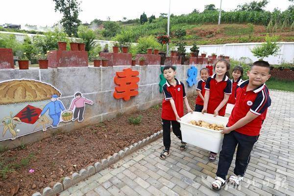 营盘河小学现有学前班学生8人、一至三年级学生共37人、教师6名,是一所名副其实的农村“袖珍小学”。该校校园面积3500平方米,其中校舍面积280平方米,大部分面积闲置。为了给学生开辟劳动教育的场所,2021年10月,学校把校园每个能利用的地方都利用起来,教室窗前,房前屋后,院墙脚下,角角落落,都划定了区域,师生齐心协力开垦了10多块小菜园,作为学生劳动的试验田,共建成1500平方米的“幸福农场”。营盘河小学负责人介绍道:“农场里四季轮作,品种繁多。蔬菜有萝卜、白菜、土豆、辣椒、包菜、葱、蒜、红薯、番茄、茄子、花生等 ,还有各类果树和鲜花。目前,校园已形成春有花、夏有荫、秋有果、冬有绿的育人环境。”