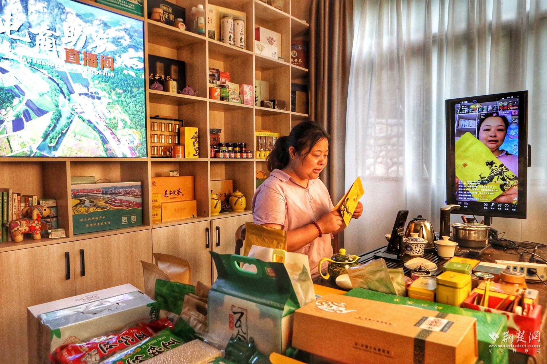 荆楚网(湖北日报网)讯(见习记者郭京茜 通讯员李亚隆)6月14日,湖北省人大代表、远安县旧县镇鹿苑村党支部书记、村委会主任付炜炜在办公室直播介绍远安鹿苑黄茶,广受好评。