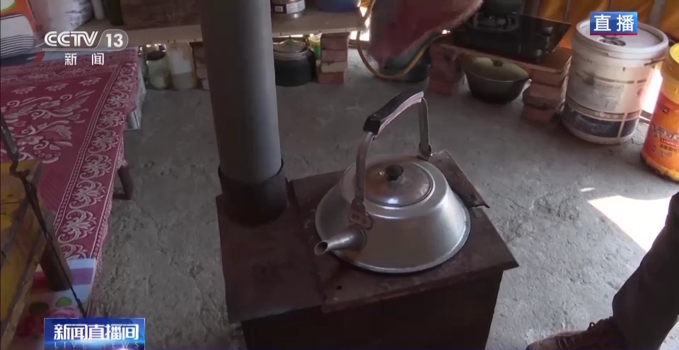 蒙古包里都有什么呢?查干扎那家收拾得很规整,有一个炉子可以通过烧牛粪、木材来取暖,蒙古包里面的床是支起来的,可以防潮。还有从定居点带过来的煤气罐煤气灶,用来做饭。还有装生活用水的桶,水从附近打来的。
