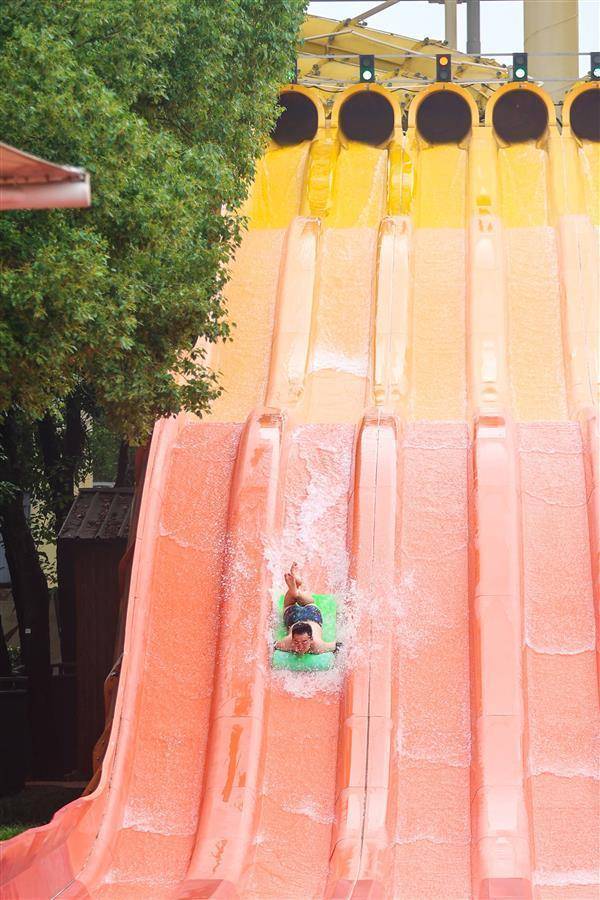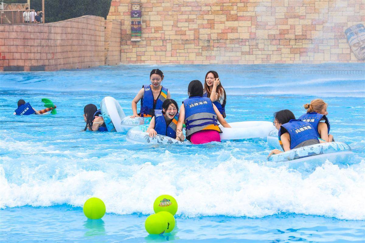 今年,玛雅海滩新推出8大精彩主题活动,“寻宝游”“健身游”等多重玩法接连上线。全三期水上游乐项目全部开放,游客可在此挑战19米高的水上“跳楼机”垂直滑道,感受极速的水上失重快感;一头扎进8700平方米的玛雅海滩造浪池,体验冲浪的快感;在神庙迷宫、亲子水寨,和孩子捉迷藏戏水嬉闹,享受亲子甜蜜夏日时光。