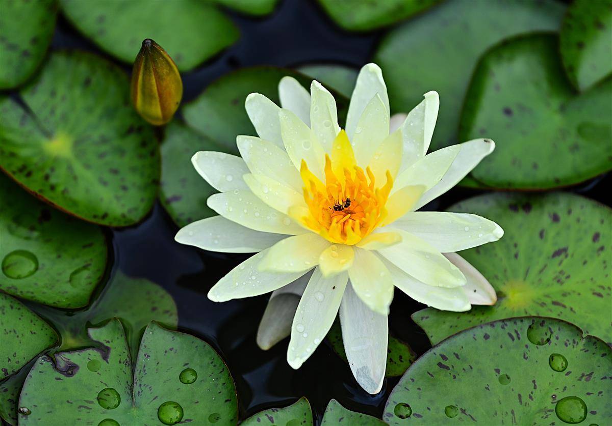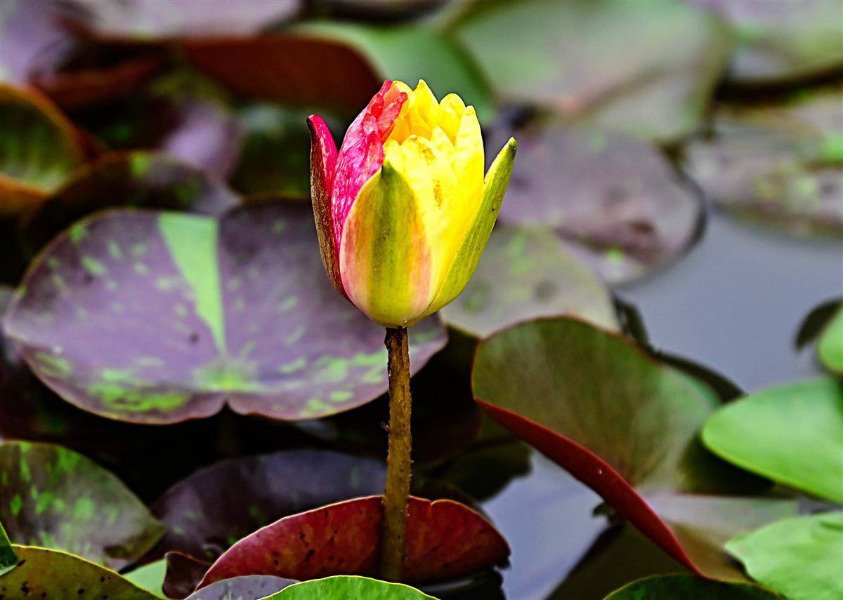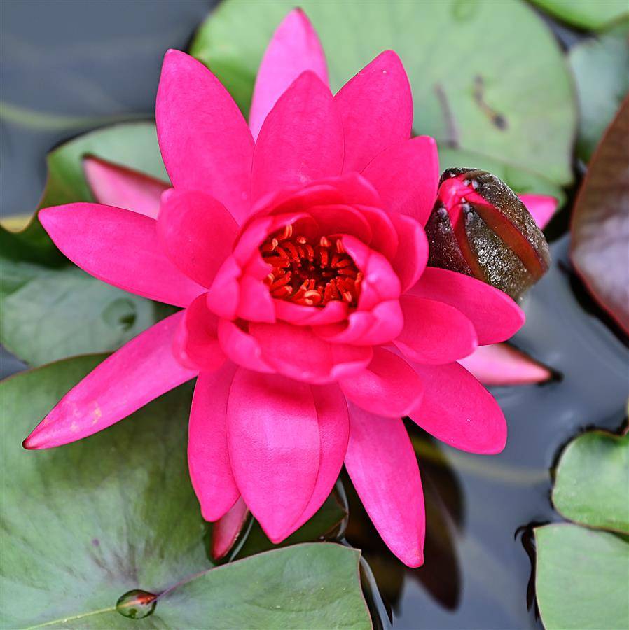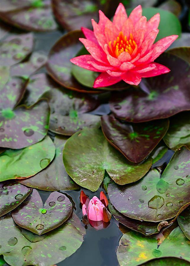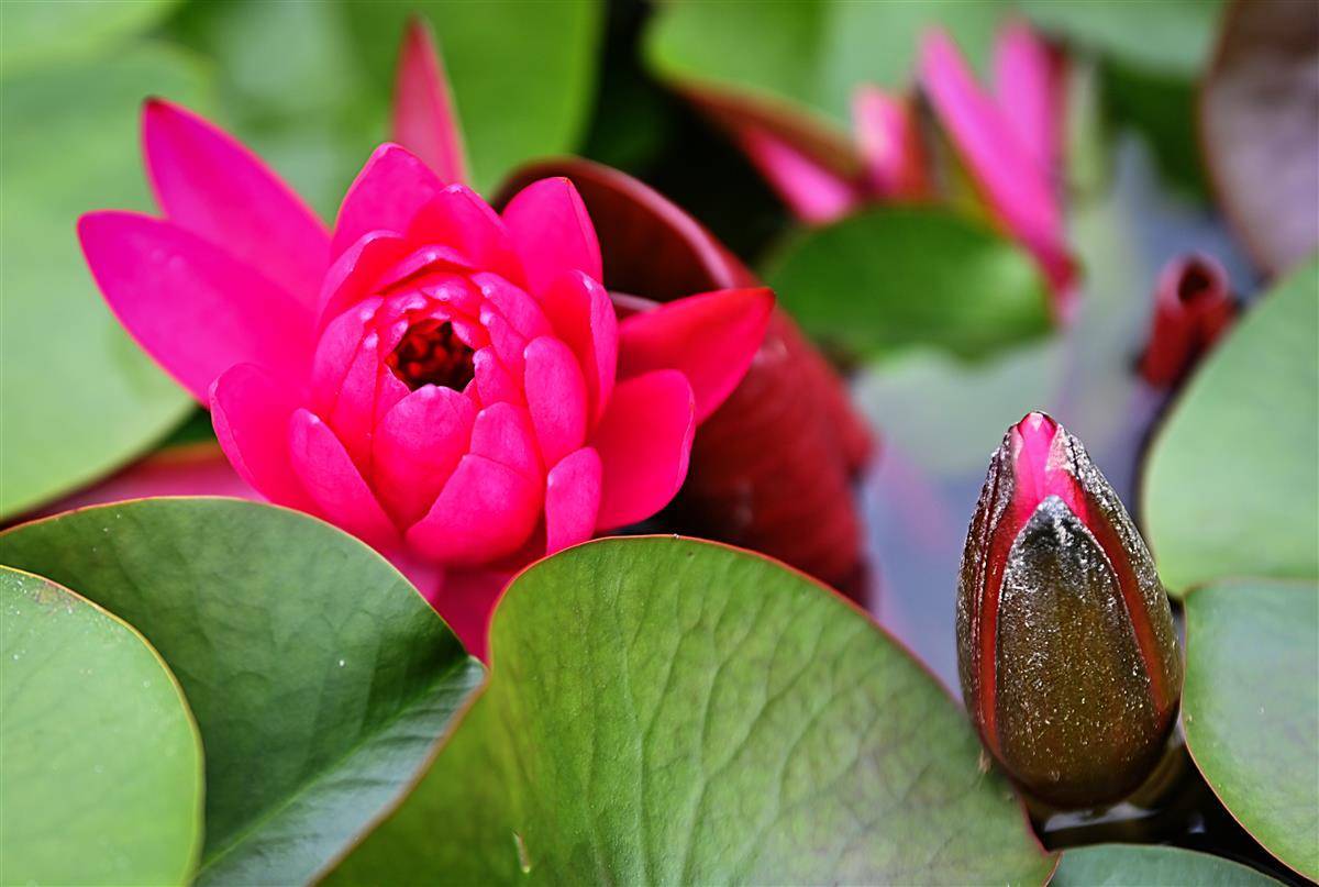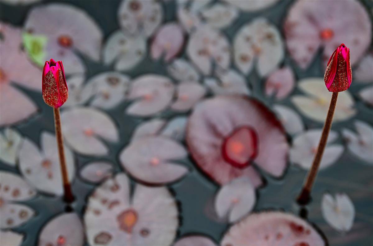 这是武汉市园林部门打造的百莲池。为了让一池之景疏密有致,舒展自然,他们进行了巧妙搭配,精心挑选红色闪耀、印度红、埃及白、万维莎等多个睡莲品种,将一盆盆颜色各异,姿态相殊的植株在宽阔池面错落摆放。(湖北日报全媒记者朱熙勇摄)