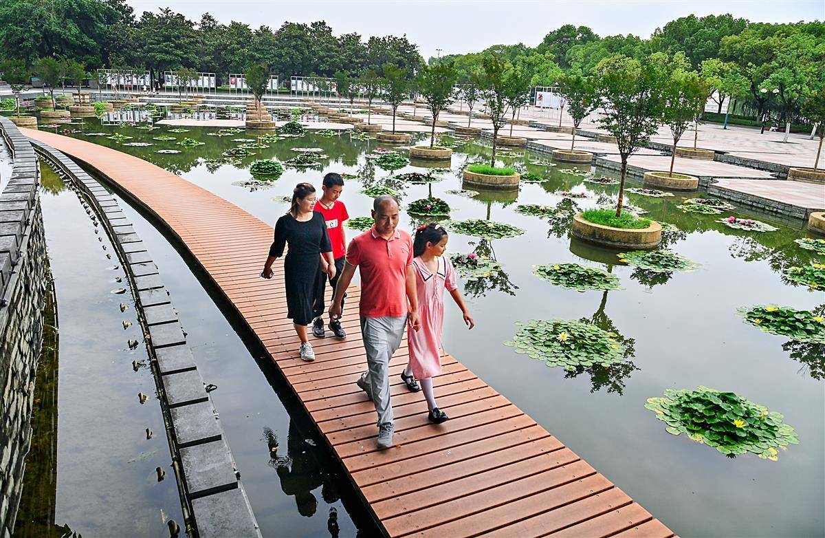 6月18日,武汉市汉口江滩二期三阳广场附近,“水池树阵”景观池里的百余株睡莲正在盛放,红似火,白无瑕,鹅黄娇嫩清新。在阳光下闪烁着动人的光芒,好一幅“盛世百莲图”,给市民游客送上了一份惊喜。