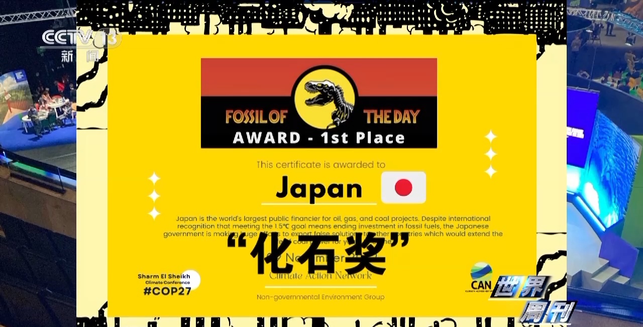 在2022年的沙姆沙伊赫COP27气候峰会上,“气候行动网络”组织还特地授予日本一项极具讽刺意味的“化石奖”。