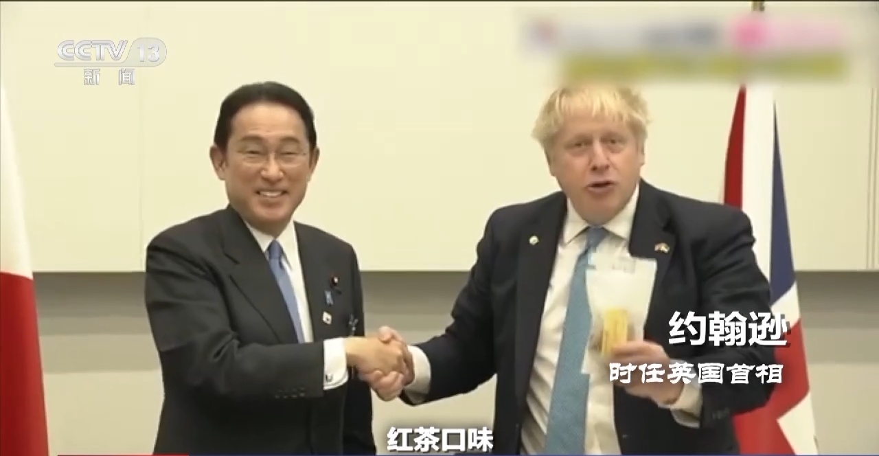 时任英国首相 约翰逊:福岛小饼干,谢谢。红茶口味,这是红茶口味对吧?