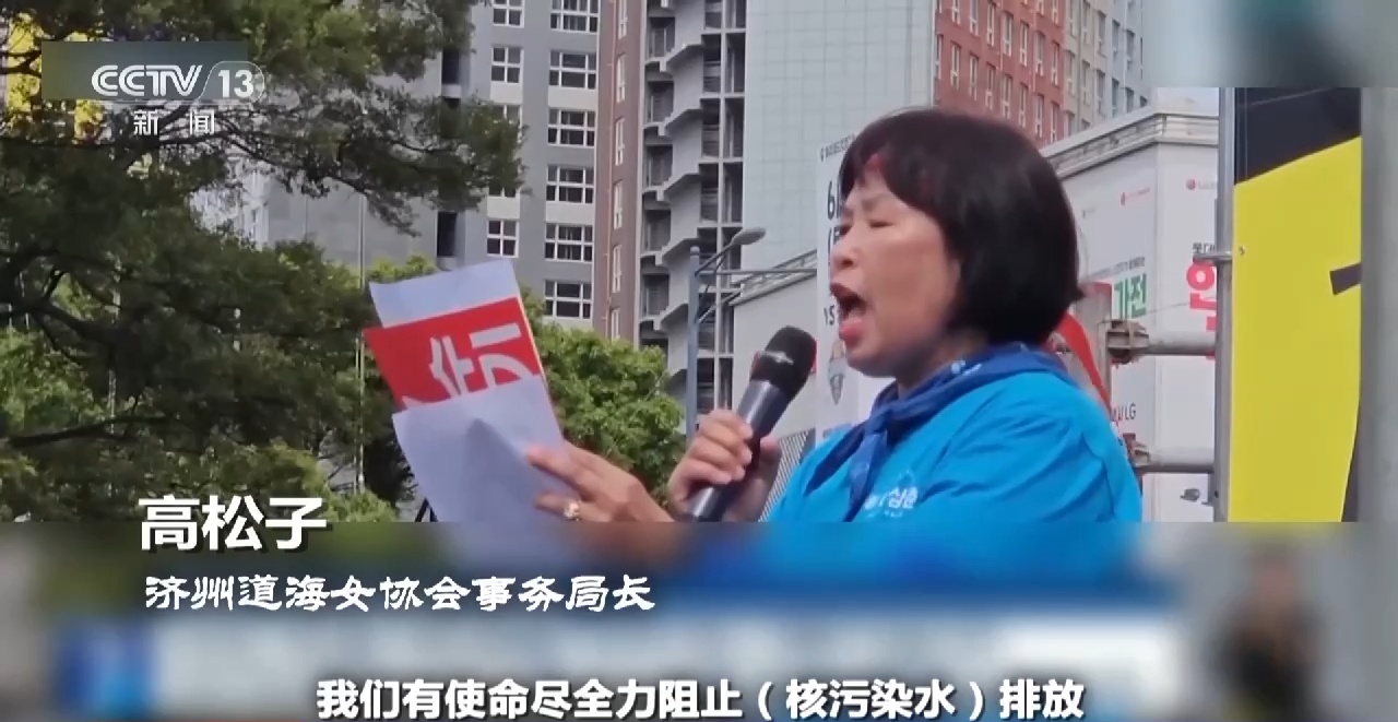济州道海女协会事务局长 高松子:我们有使命尽全力阻止核污染水排放,我们不能把被核电站污染水污染的大海留给子孙后代。