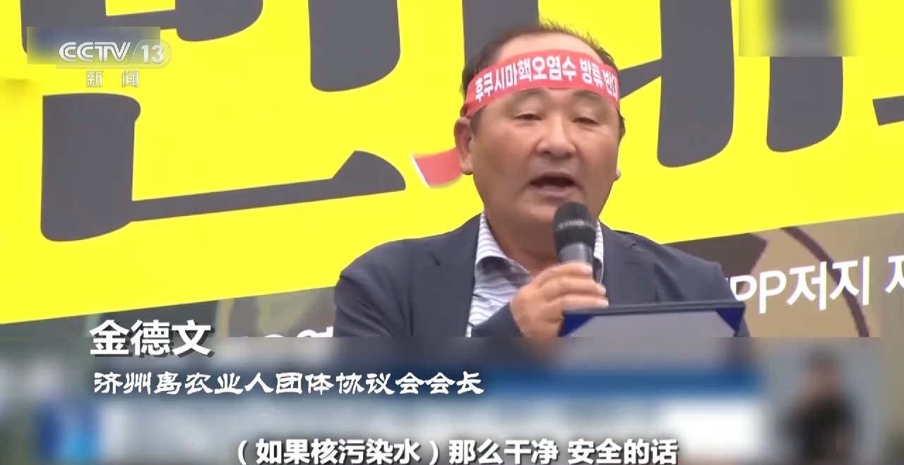 济州岛农业人团体协议会会长 金德文:如果核污染水那么干净、安全的话,难道不应该在日本国内作为生活用水使用吗?