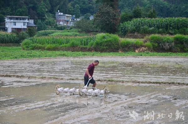 湖北日报客户端讯(通讯员谭凤玲 饶文均)每年6月,是中稻晚稻生产的关键时期。6月14日,来凤县百福司镇30亩优质水稻试验田陆续开始播种。今年该镇通过采用“厢沟+直播器”的方式,助力水稻生产提质增效。