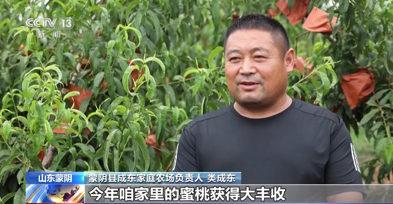 山东蒙阴县成东家庭农场负责人 类成东:今年桃子的产量比较好,产量高,收入也好。这几年引进新品种有五六个,种植了二三十亩,今年光新品种创收就有五六十万元。