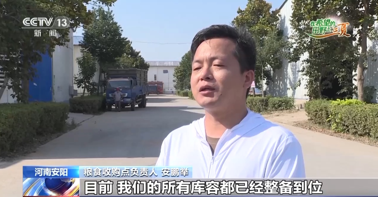粮食收购点负责人 安鹏举:目前,我们的所有库容都已经整备到位,能收购8000万斤的小麦,收储资金已经全部到位,今天的小麦收购价格是每斤1.38元,我们保证农户粮入库、钱到手,绝不打白条。