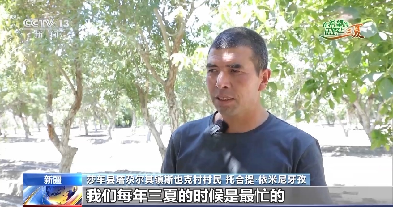 莎车县塔尕尔其镇斯也克村村民 托合提·依米尼牙孜:我们每年三夏的时候是最忙的,翻地、播种,每天能播40亩地,能挣800块钱。