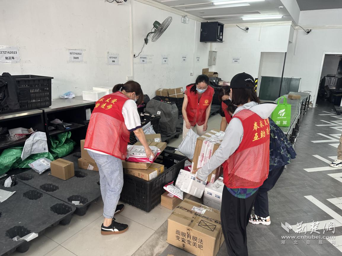 荆楚网(湖北日报网)讯(记者何婧 通讯员熊勋 实习生周昌芳)卸货、分拣、打包、装车……近日,在江汉区北湖街道环保社区的顺丰快递站点,身穿红马甲的志愿者们体验了一把快递员的工作日常,感受高温烈日下的坚守。
