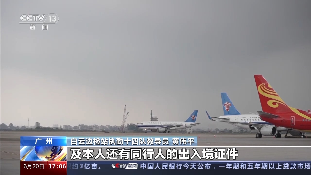 白云边检站执勤十四队教导员 黄伟平:端午前夕雷雨天气频密,对航班起降有一定影响,出行前请留意航班动态信息和本人及同行人的出入境证件及签证是否在有效期内,预留充足时间。