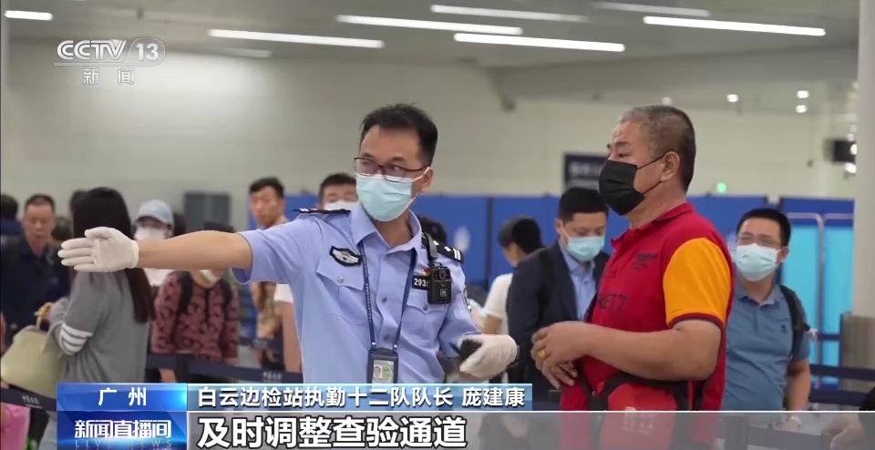 白云边检站执勤十二队队长 庞建康:为确保中国公民出入境通关排队时间不超过30分钟,我们在出入境大厅均设立了“中国公民专用通道”,并实时监测现场旅客候检流量变化,及时调整查验通道。