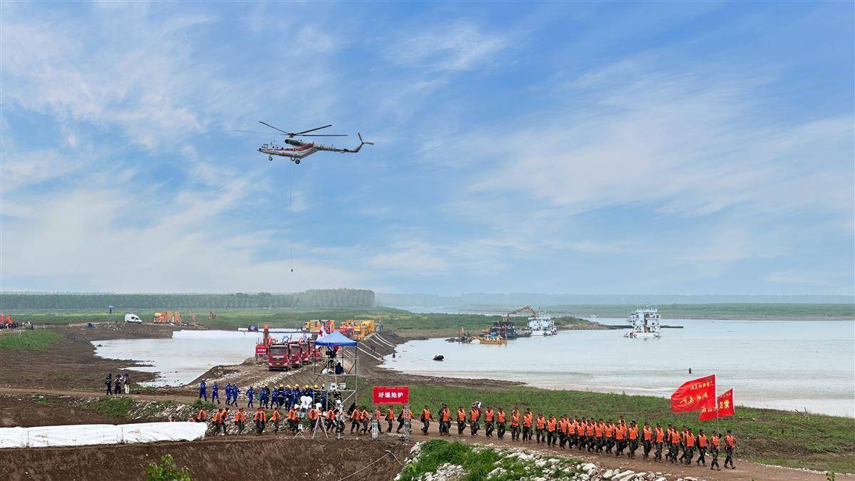 决口封堵行动主要演练陆上和空中专业力量运用新战法、新材料处置决口险情。