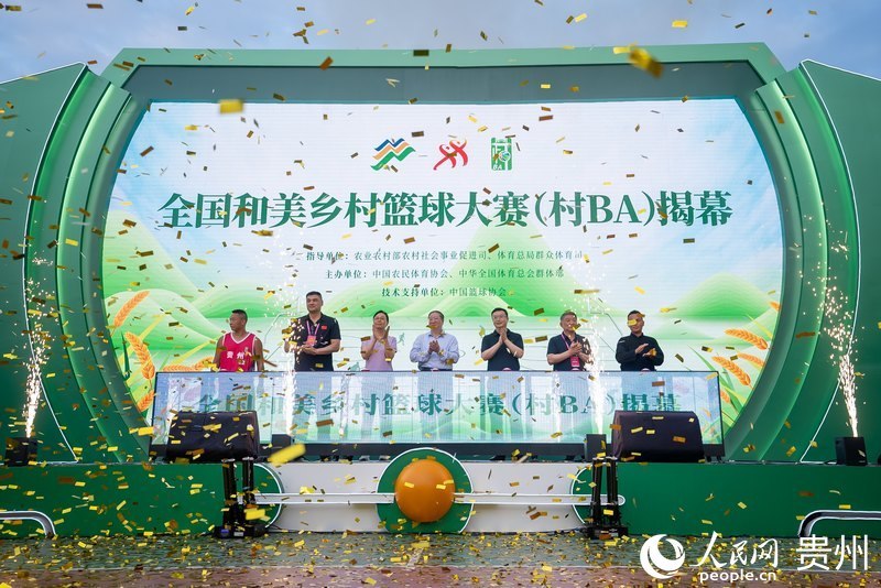 人民网台江6月21日电(记者 涂敏) 6月20日,全国和美乡村篮球大赛(村BA)揭幕式在贵州省黔东南州台江县台盘村举行。