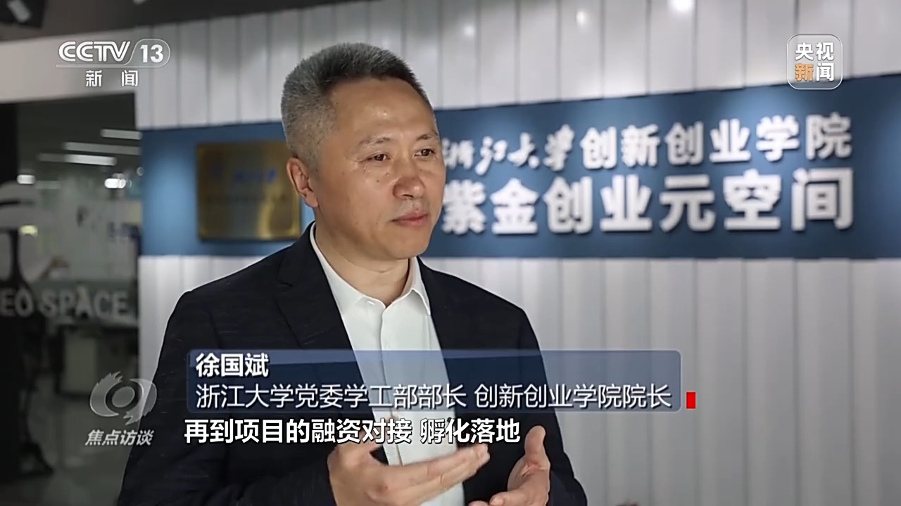 浙江大学党委学工部部长、创新创业学院院长 徐国斌:我们面向全校本科生开设了100多门创新创业教育课程,从创新意识的激发,到技能的培训,到项目的优化,再到项目的融资对接、孵化落地有一套全链条式的模式。