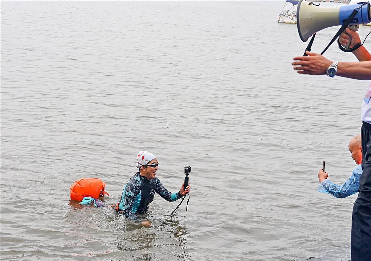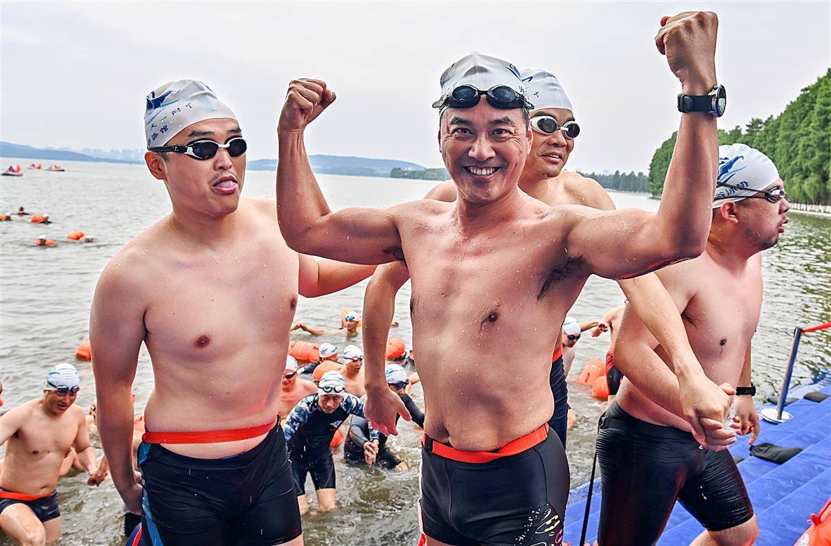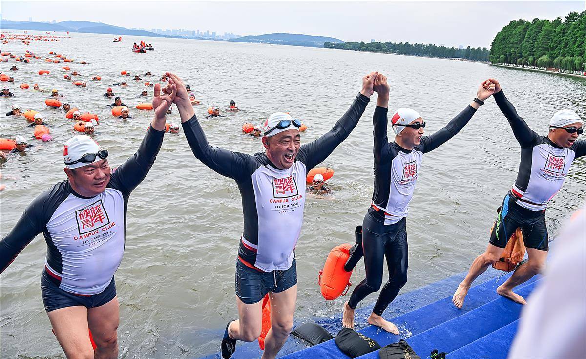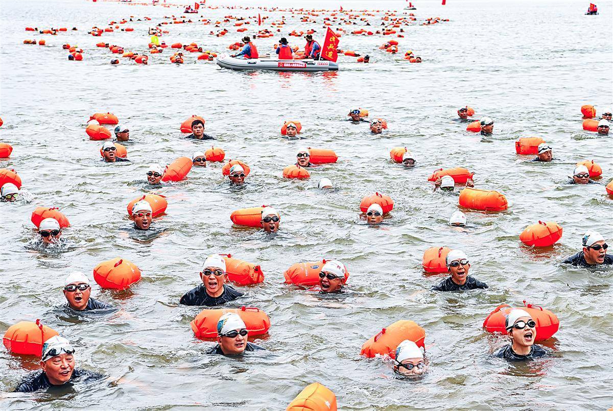 6月23日上午,参加2023年第48届7.16武汉渡江节的21支渡江方队在东湖听涛景区水域,进行了一场壮观的测试赛,大约1400名选手参加测试,接受正式横渡长江前的检验。从早上7点钟开始,东湖长天楼码头就已经开始热闹起来。从武汉三镇赶来的各横渡方队的游泳爱好者陆续集结。按测试要求,各横渡方队必须保持方队队形完整,游完测试距离,对不能按要求完成测试或明显脱离本方队的选手将取消其参加横渡长江活动的资格。(湖北日报全媒记者朱熙勇摄)