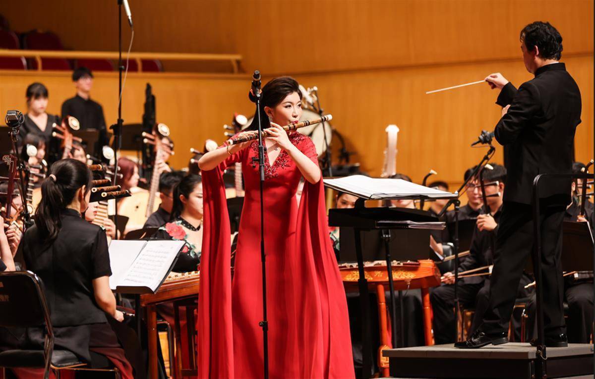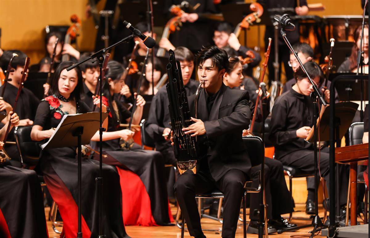 该场音乐会由武汉音乐学院中国器乐系出品、武汉音乐学院青年中乐团演奏、谭军教授执棒指挥。音乐会围绕传统节日和爱国主义主题,上演了多首色彩丰富、风格各异的民族交响作品。编钟与民族管弦乐《和鸣》《楚宫夜宴》《桃花流水》以两千多年前的古器编钟与现代大型民族管弦乐队交相辉映,气势磅礴,奏出和谐之音。由青年古筝教师李晓雁演奏的《满江红》,笙专业优秀研究生耿森演奏的《傩舞》,青年二胡教师尤毅懿演奏的《洪湖人民的心愿》,青年声乐教师刘皓月演唱的《唱支山歌给党听》《洪湖水浪打浪》,青年竹笛教师张莹莹演奏的《楚颂》风格迥异、各具特色,饱含荆楚文化风韵,在编钟与民族管弦乐队的映衬中,展现了中国传统音乐文化的丰富魅力。
