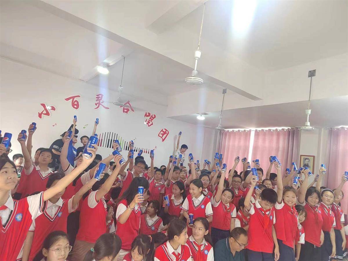 当教务主任张德武宣布全体同学顺利毕业时,学生们高举印有自己名字的可乐瓶罐,大声合唱校歌《尚恩之路》,纷纷来到孝德楼国旗台旁,铭恩楼下,尽孝雕塑前,文化院墙边,师生合影留念。
