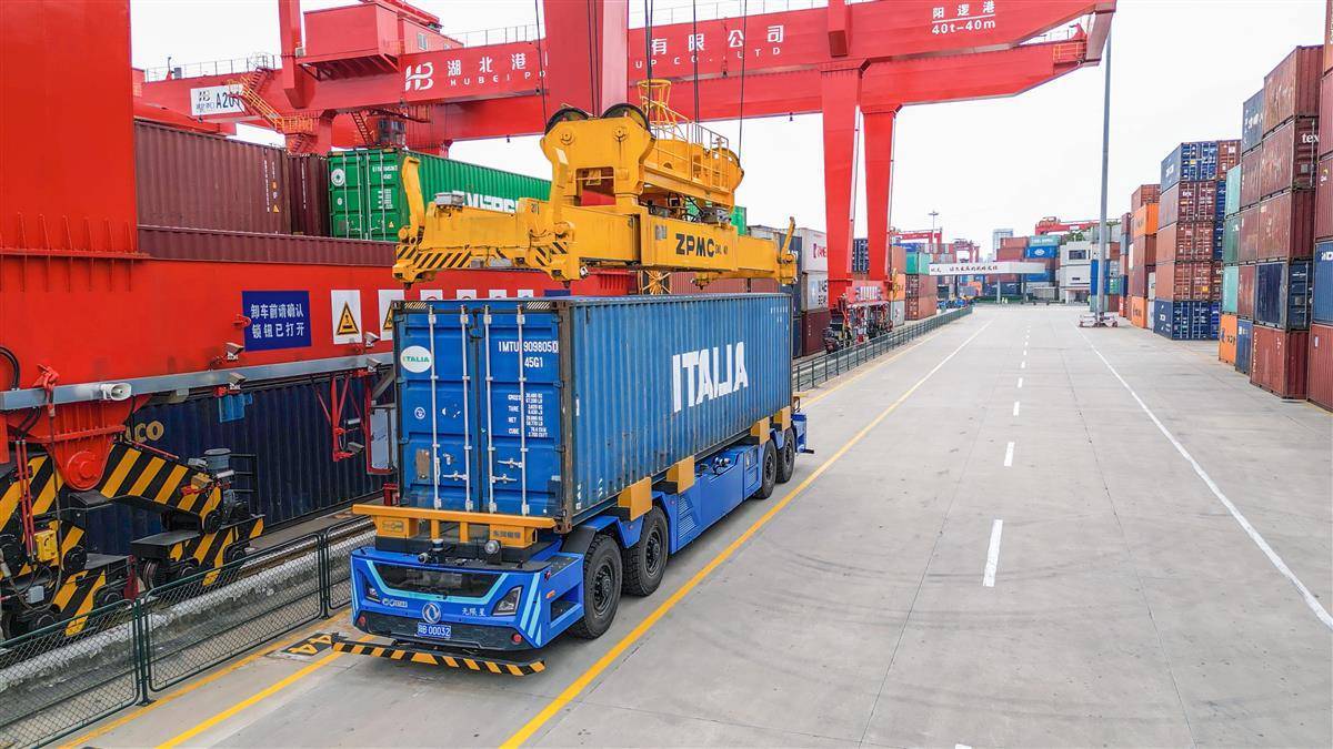 武汉阳逻港东风悦享无人驾驶集装箱搬运车作业