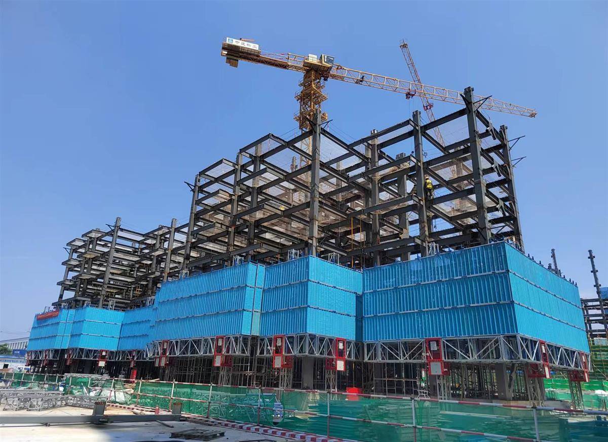 为高质高效完成建设目标,项目施工团队通过开展“七赛七比”劳动竞赛,调动各参建单位的积极性、主动性,高水平高标准推进项目建设。同时,项目团队坚持创新驱动发展,积极响应国家“双碳”战略,工程建设中锚定钢结构装配式创新主航道,在装配式设计、施工工艺、智能制造以及现场工业化等方面进行创新探索和突破。团队通过精细的施工安排,结合技术创新,实现快速穿插,力争提前半年完成竣工交付,实现完美履约。