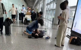 近日,一名男子在湖南长沙机场晕倒,路过的医学生情侣潘乃凡和康嘉立即上前急救,男子最终转危为安。