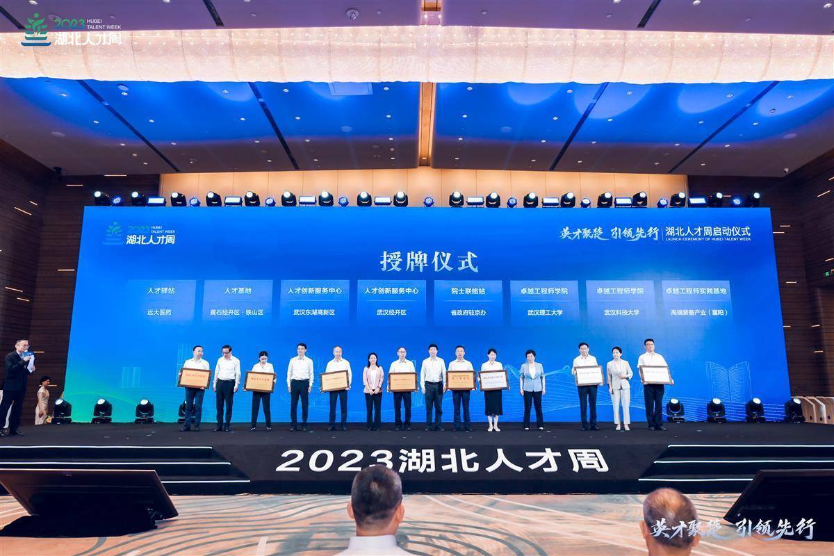 湖北省委人才办在全省指导创建的20个人才创新服务中心、20个人才基地、30个人才驿站正式授牌。北京院士工作站,武汉大学、武汉理工大学、武汉科技大学、湖北工业大学等4所高校卓越工程师学院,在武汉高新区、武汉经开区、襄阳高新区建设的3个卓越工程师实践基地也在活动现场授牌。