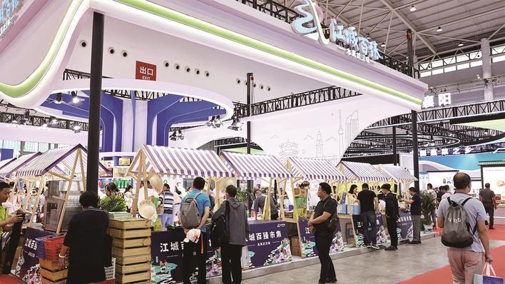 首届湖北食品产业链博览会上,“江城百臻”市集吸引观众眼球。
