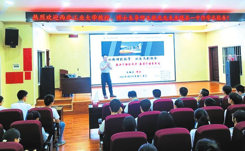 近日,西北工业大学教授、博士生导师王敏庆受邀走进随县一中开展“名师大讲堂”活动,传授航空航天科学知识,给全校师生带来了一场精彩的学术报告。(随州日报通讯员 徐长城摄)