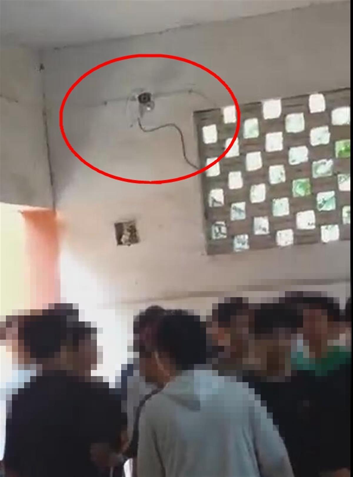 现场视频显示,在一厕所内,很多男孩进进出出,在厕所墙上,可见一监控摄像头正对着厕所内的男孩们。