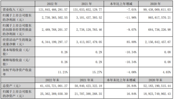 铜陵有色2022年营业收入为1218.45亿元,同比下降7.01%;归属于上市公司股东的净利润为27.30亿元,同比下降11.96%;归属于上市公司股东的扣除非经常性损益的净利润为24.90亿元,同比下降9.07%;经营活动产生的现金流量净额为63.44亿元,同比增加85.88%。