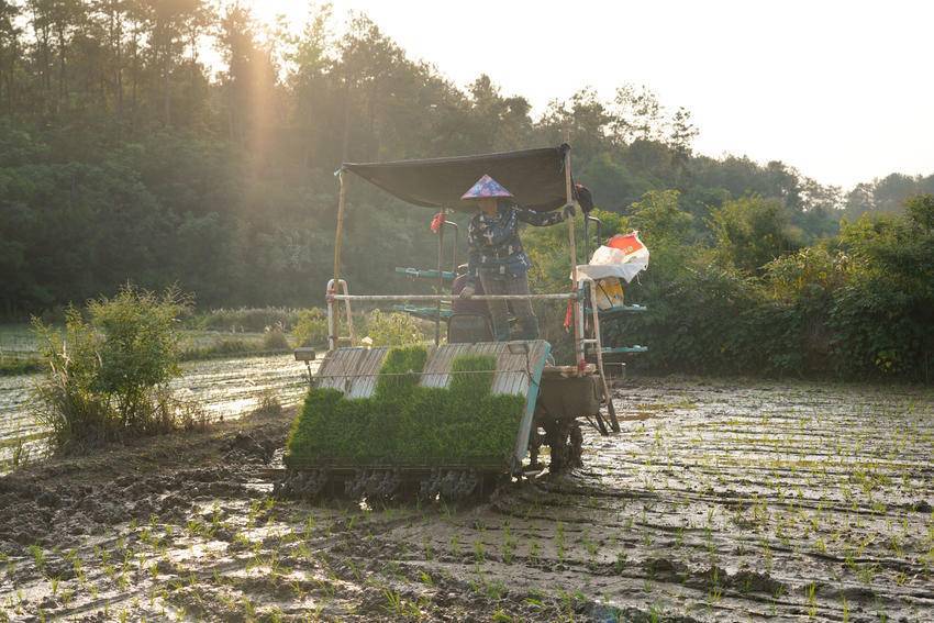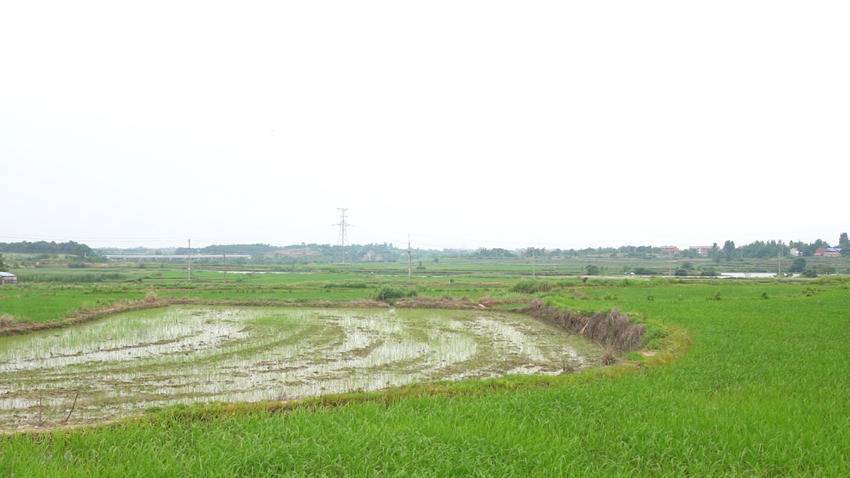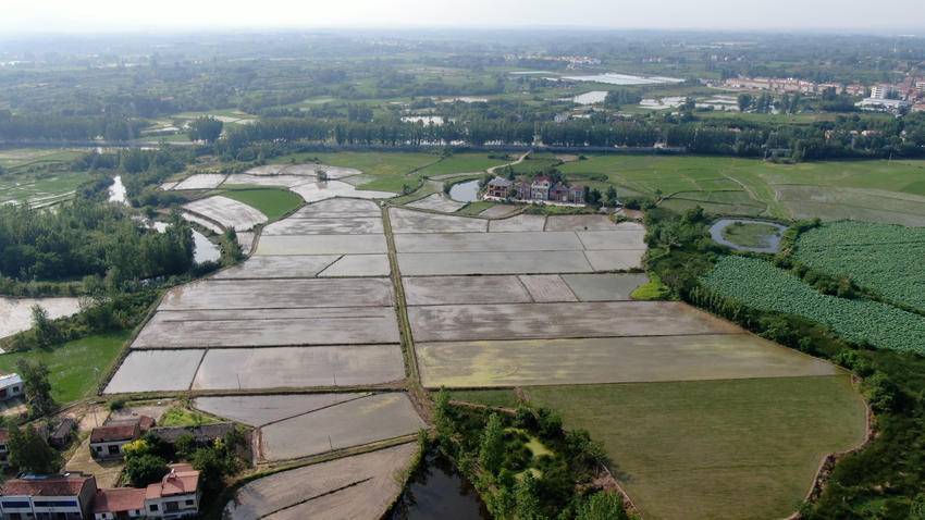 走进接官乡会寨村唐畈片,高低不平、大小不一的农田里,种满了秧苗。