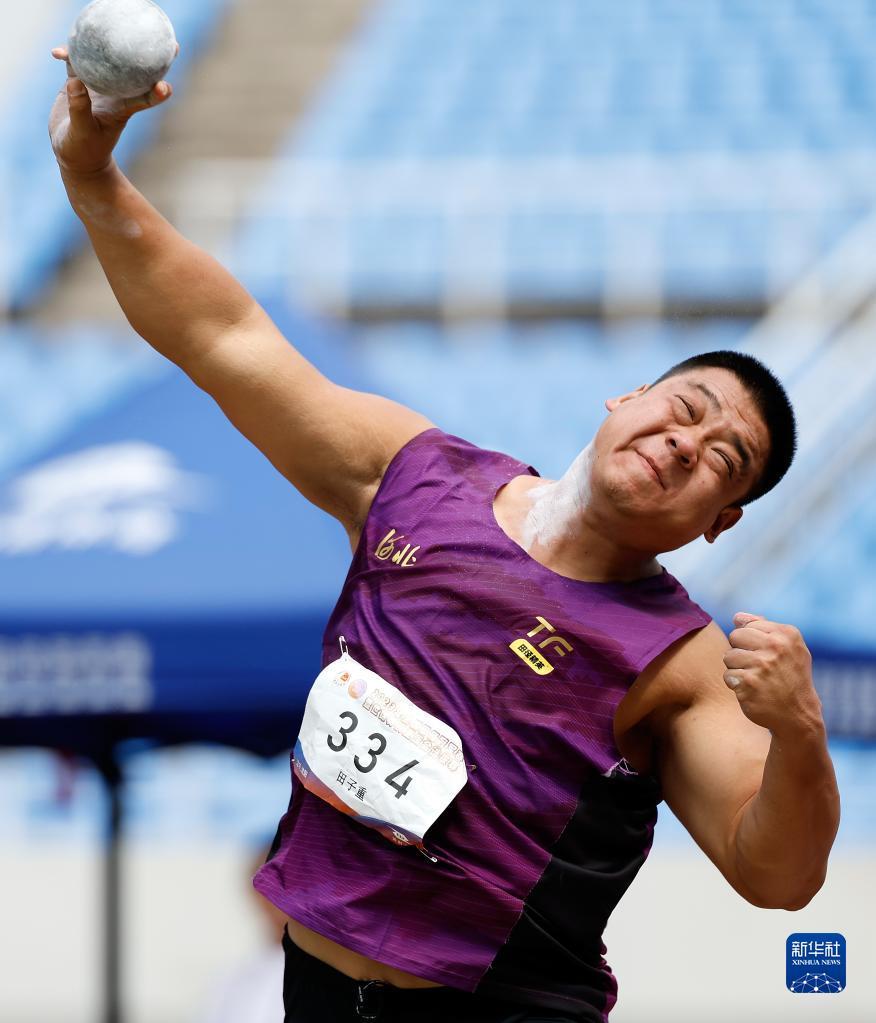 6月29日,河北队选手田子重在男子铅球决赛中。最终,他以19米76的成绩获得季军。新华社记者 王丽莉 摄