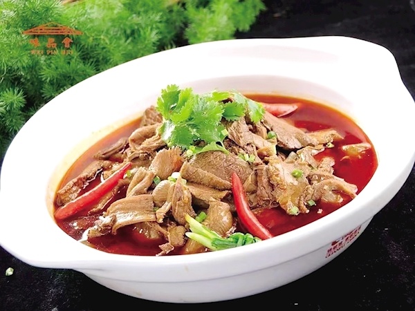 毛血旺:新鲜猪血、牛百叶、鱿鱼、午餐肉、虾仁搭配千张、土豆片,加入秘制酱料,口味麻辣鲜香。